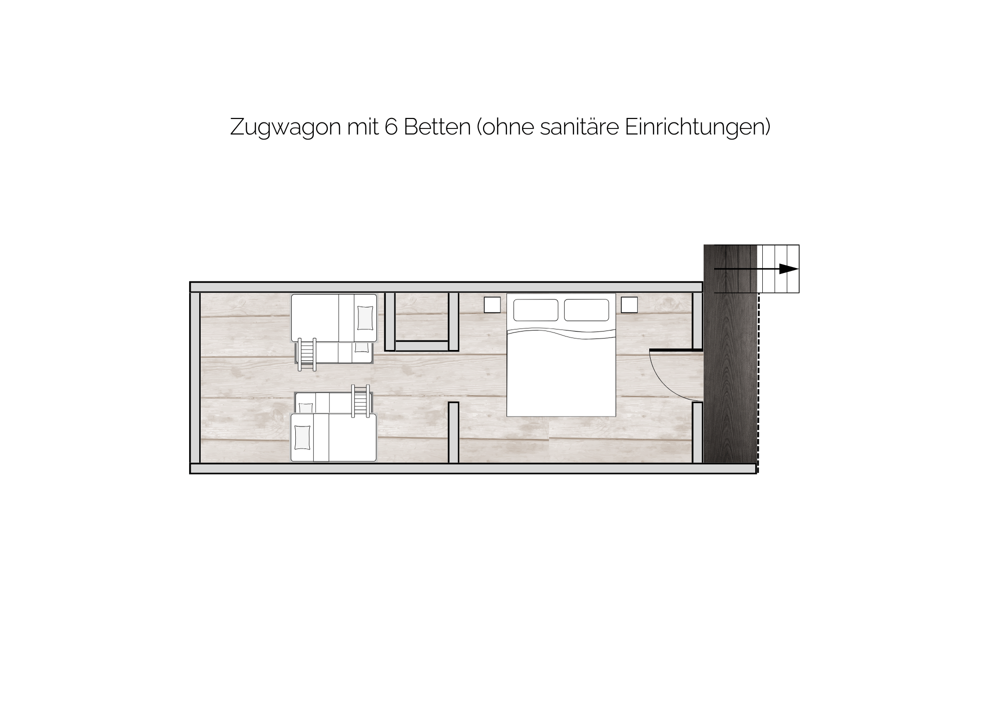 Zugwagon mit 6 Betten (ohne sanitäre Einrichtungen):