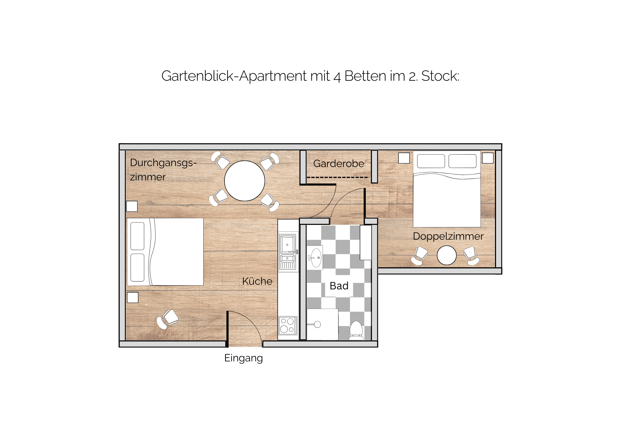 Gartenblick-Apartment mit 4 Betten im 2. Stock: